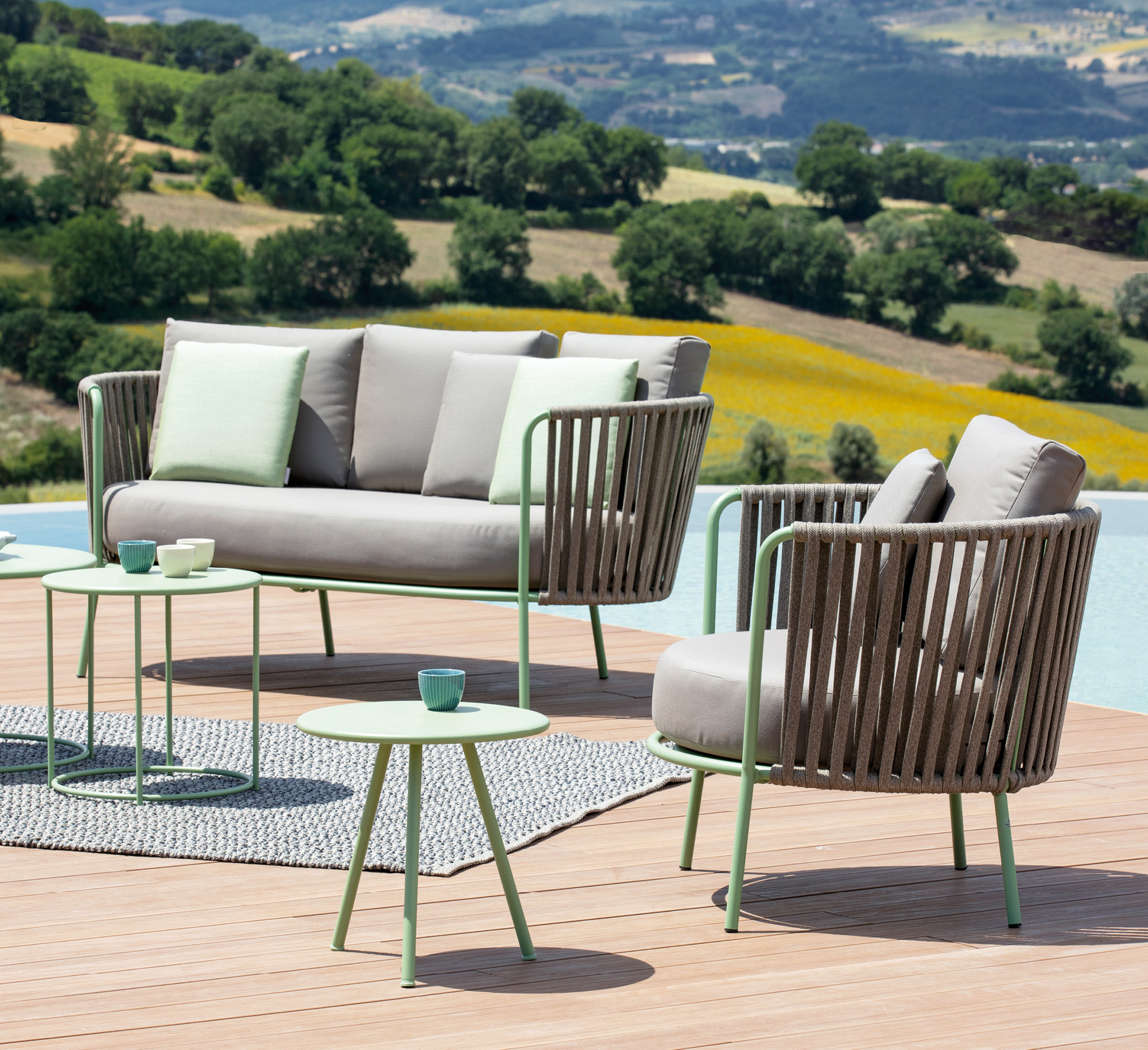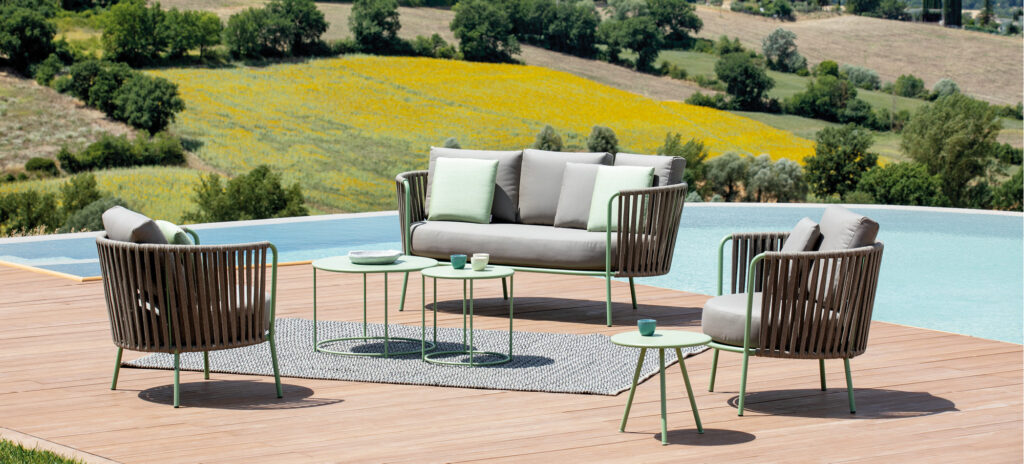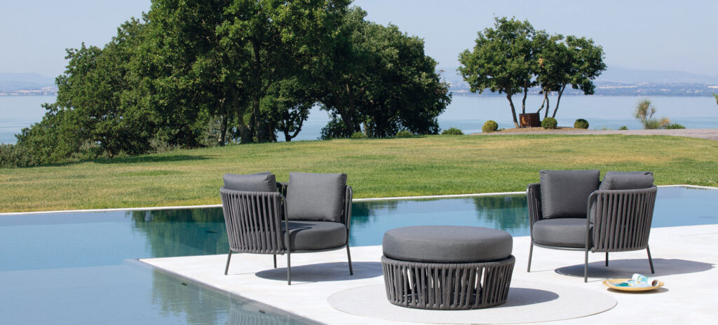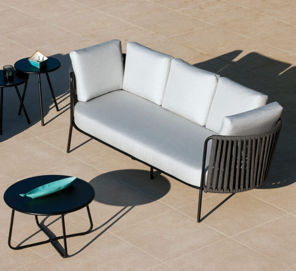Una collezione dal gusto contemporaneo, in cui l’intreccio di forme geometriche basiche e linee essenziali crea un’ atmosfera dinamica e funzionale. Il salotto all’aperto diventa uno spazio fluido e a tratti onirico, che si integra perfettamente in ogni ambiente.